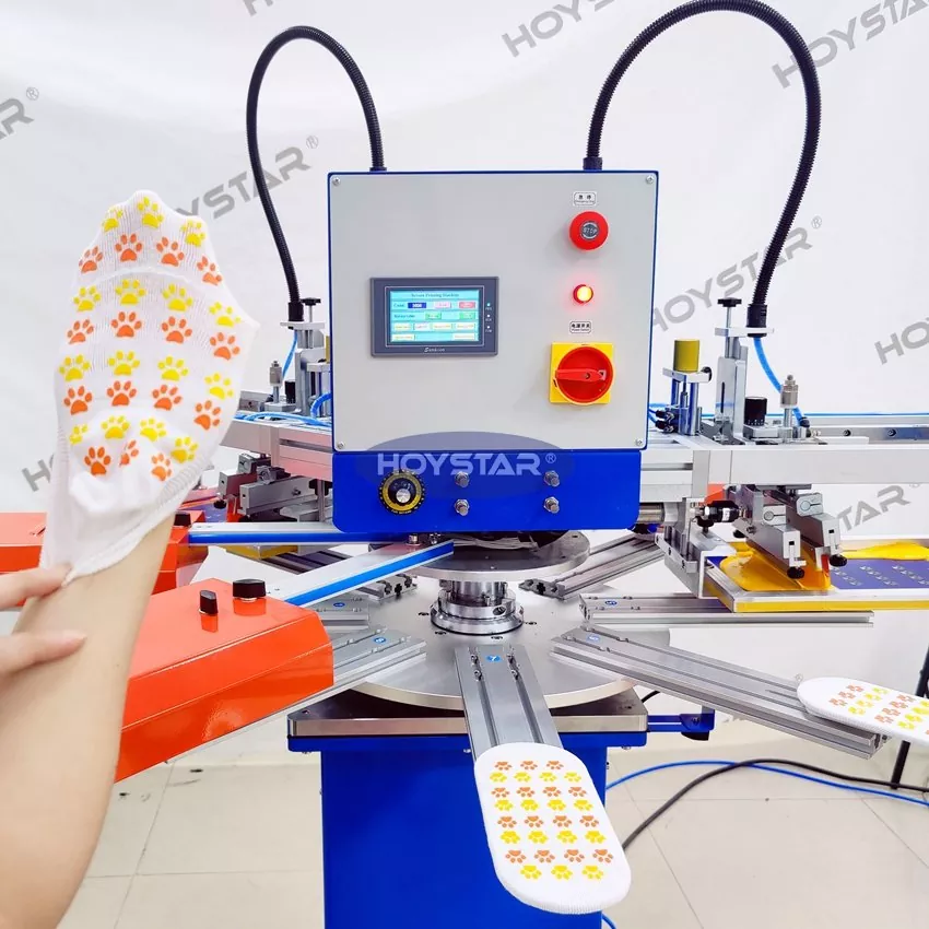 পেশাদার প্রস্তুতকারক এবং সরবরাহকারী হিসেবে, HOYSTAR হাই র্যাপিড 2 কালার সক্স স্ক্রিন প্রিন্টিং মেশিন টেক্সটাইল বুনন শিল্পে অ্যাপ্লিকেশনের জন্য ডিজাইন করা হয়েছে। 1000PCS/Hr পর্যন্ত গতি সহ, এটি নন-স্লিপ মোজা, শিশুর মোজা, প্রাপ্তবয়স্কদের মোজা, সকার মোজা ইত্যাদি মুদ্রণের জন্য উপযুক্ত। রোটারি ওয়ার্কটেবল দিয়ে সজ্জিত, মোজা লোড করা এবং আনলোড করা খুবই সুবিধাজনক। পিএলসি টাচ স্ক্রিন নিয়ন্ত্রণ, পরিচালনা করা খুব সহজ। শুকানোর সিস্টেমে সজ্জিত মেশিন সিলিকন এবং কালি ভালভাবে শুকাতে পারে।