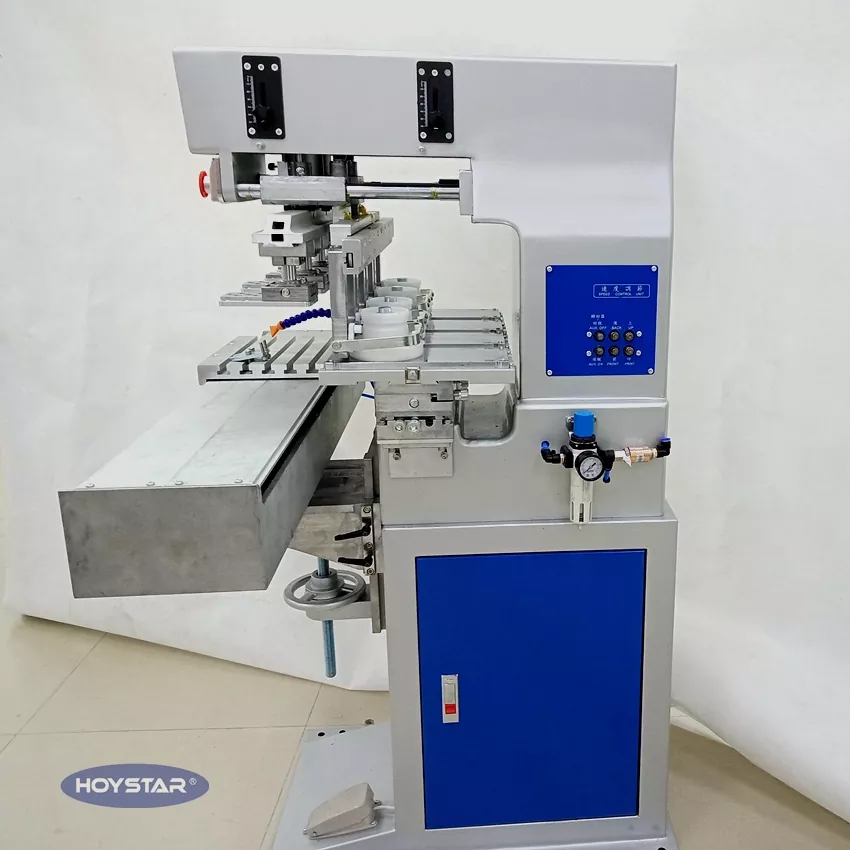 কভারের জন্য শাটল ওয়ার্কটেবল সহ এই HOYSTAR 4 কালার প্যাড প্রিন্টার একটি উচ্চ-ক্ষমতা এবং সাশ্রয়ী মুদ্রণ সরঞ্জাম। মেশিনটি সুবিধাজনক সামঞ্জস্য, স্থিতিশীল অপারেশন এবং ভাল মুদ্রণ প্রভাব অফার করে। মেশিনটি অবিচলিত মুদ্রণের গুণমান সরবরাহ করে এবং ইলেকট্রনিক পণ্য, প্লাস্টিকের শেল, হার্ডওয়্যার পণ্য, স্টেশনারি, ছোট শিল্প ও কারুশিল্পের পাশাপাশি উপহারের পৃষ্ঠে ছোট লোগো এবং আরও অনেক কিছু প্রিন্ট করার জন্য উপযুক্ত। গ্রাহকের বিভিন্ন প্রিন্টিং প্রয়োজনীয়তা পূরণ করতে পারে।