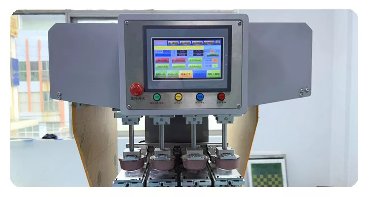 হেলমেটের জন্য 4 রঙের প্যাড প্রিন্টিং মেশিন নিয়ন্ত্রণ করতে টাচ প্যানেল দিয়ে সজ্জিত