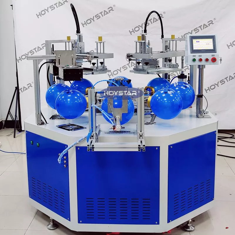 চীনে পেশাদার প্রস্তুতকারক হিসাবে, আমরা আপনাকে উচ্চ-দক্ষ HOYSTAR স্বয়ংক্রিয় 2 রঙের বেলুন স্ক্রিন প্রিন্টিং মেশিন সরবরাহ করতে চাই। আমাদের মেশিনগুলি পিএলসি এবং টাচ স্ক্রিন নিয়ন্ত্রণ ব্যবহার করে এবং প্রধানত বিভিন্ন ধরণের ল্যাটেক্স বেলুন মুদ্রণের জন্য ব্যবহৃত হয়। মেশিন একটি একক পাসে 2-রঙের মুদ্রণ করতে পারে এবং শুকানোর ওভেনের সাথে কালি ভালভাবে শুকাতে পারে।