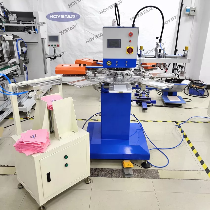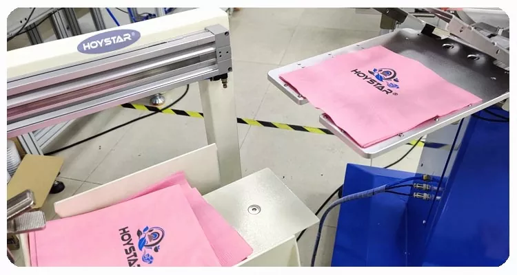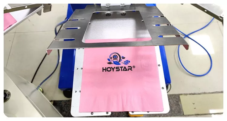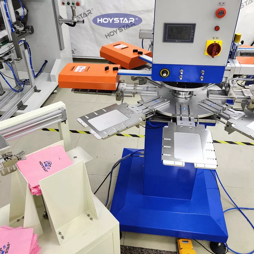 HOYSTAR চীনের একটি নির্ভরযোগ্য প্রস্তুতকারক এবং সরবরাহকারী; এই HOYSTAR স্বয়ংক্রিয় 2 রঙের ন্যাপকিন স্ক্রিন প্রিন্টিং মেশিনটি বিশেষভাবে ন্যাপকিনে সম্পূর্ণ স্বয়ংক্রিয় মুদ্রণের জন্য ডিজাইন করা হয়েছে। এর সুবিন্যস্ত মুদ্রণ প্রক্রিয়াটি নিম্নরূপ প্রকাশ পায়: ম্যানুয়ালি মেশিনে ন্যাপকিনগুলি লোড করুন-প্রথম রঙের স্বয়ংক্রিয় মুদ্রণ-স্বয়ংক্রিয় শুকানো-দ্বিতীয় রঙের স্বয়ংক্রিয় মুদ্রণ-স্বয়ংক্রিয় শুকানো-স্বয়ংক্রিয় আনলোডিং-এবং স্বয়ংক্রিয় পণ্য সংগ্রহ।