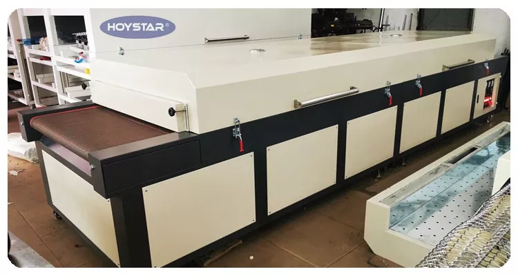 চীনে পেশাদার প্রস্তুতকারক হিসাবে, আমরা আপনাকে কনভেয়র বেল্ট সহ উচ্চ-দক্ষতা HOYSTAR বড় ইনফ্রারেড ড্রায়ার মেশিন সরবরাহ করতে চাই। স্ক্রিন প্রিন্টিং, পেইন্টিং, হট-সেটিং আঠালো প্রয়োগ, ইঙ্কজেট প্রিন্টিং এবং আরও অনেক কিছুর পর বিভিন্ন পণ্য যেমন টেক্সটাইল, পতাকা, ব্যানার, অ্যালুমিনিয়াম শীট, গ্লাস, কাগজ এবং প্লাস্টিক শুকানোর জন্য উপযুক্ত।