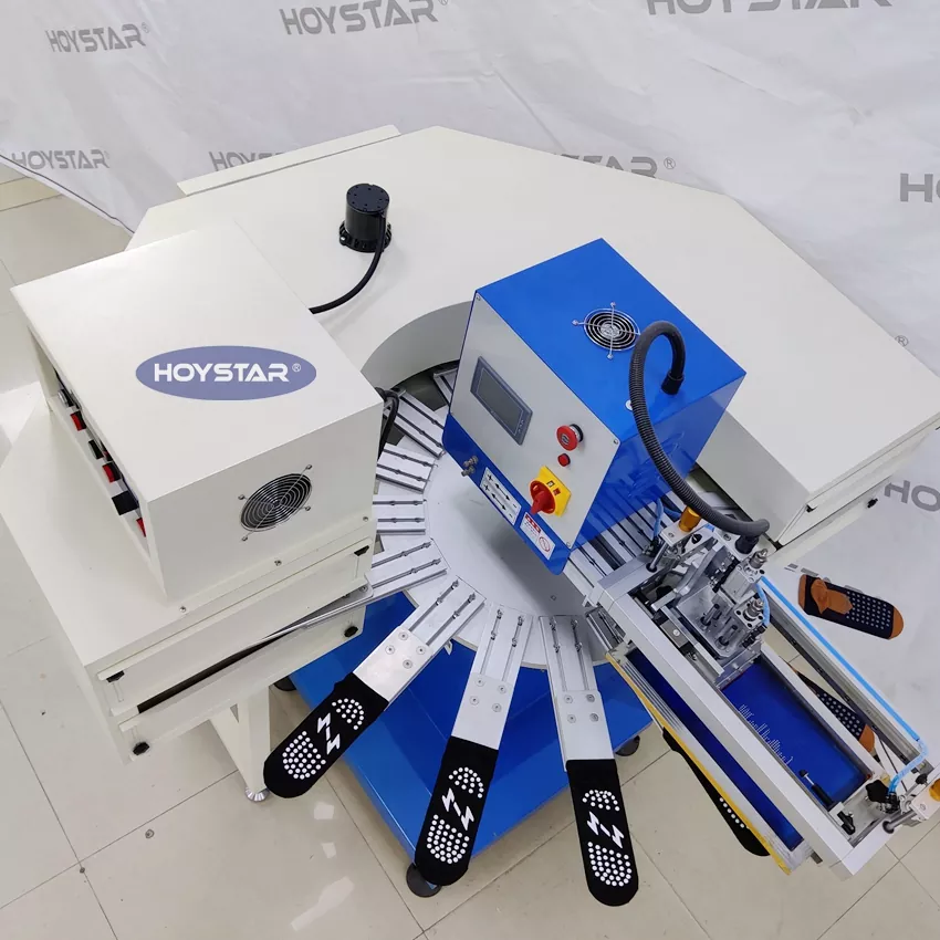 পেশাদার প্রস্তুতকারক এবং সরবরাহকারী হিসাবে, এই HOYSTAR উচ্চ দ্রুত বড় আকারের মোজা সিল্ক স্ক্রিন প্রিন্টিং মেশিনটি টেক্সটাইল বুনন শিল্পে অ্যাপ্লিকেশনের জন্য ডিজাইন করা হয়েছে। 1200PCS/Hr পর্যন্ত গতির সাথে, এটি নন-স্লিপ মোজা, শিশুর মোজা, প্রাপ্তবয়স্ক মোজা, সকার মোজা ইত্যাদি মুদ্রণের জন্য উপযুক্ত। রোটারি ওয়ার্কটেবল এবং 16টি ওয়ার্কস্টেশন দিয়ে সজ্জিত, মোজা লোড করা এবং আনলোড করা খুবই সুবিধাজনক। পিএলসি টাচ স্ক্রিন নিয়ন্ত্রণ, পরিচালনা করা খুব সহজ। শুকানোর সিস্টেমে সজ্জিত মেশিন সিলিকন এবং কালি ভালভাবে শুকাতে পারে।
