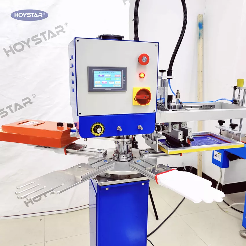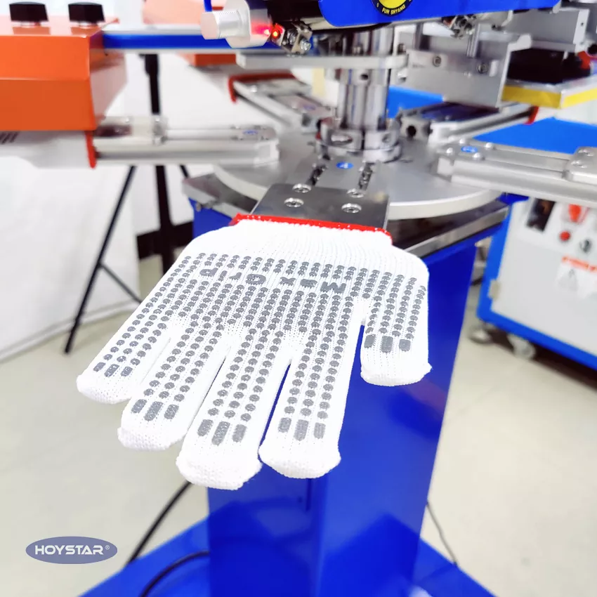 পেশাদার প্রস্তুতকারক এবং সরবরাহকারী হিসাবে, HOYSTAR হাই র্যাপিড নন স্লিপ গ্লাভস স্ক্রিন প্রিন্টিং মেশিন টেক্সটাইল বুনন শিল্পে অ্যাপ্লিকেশনের জন্য ডিজাইন করা হয়েছে। 1000PCS/Hr পর্যন্ত গতির সাথে, এটি কাজের গ্লাভস, তুলো গ্লাভস, বোনা গ্লাভস ইত্যাদি প্রিন্ট করার জন্য উপযুক্ত। রোটারি ওয়ার্কটেবল দিয়ে সজ্জিত, গ্লাভস লোড করা এবং আনলোড করা খুবই সুবিধাজনক। পিএলসি টাচ স্ক্রিন নিয়ন্ত্রণ, পরিচালনা করা খুব সহজ। শুকানোর সিস্টেমে সজ্জিত মেশিন সিলিকন এবং কালি ভালভাবে শুকাতে পারে।