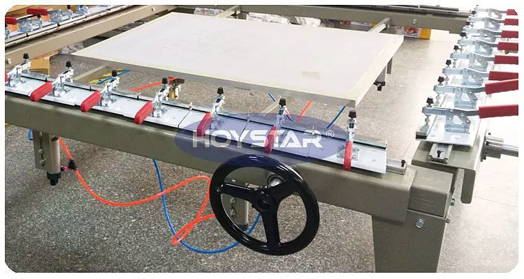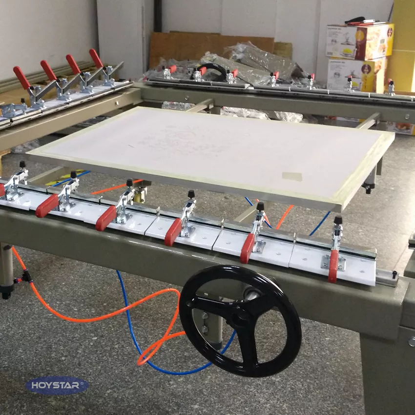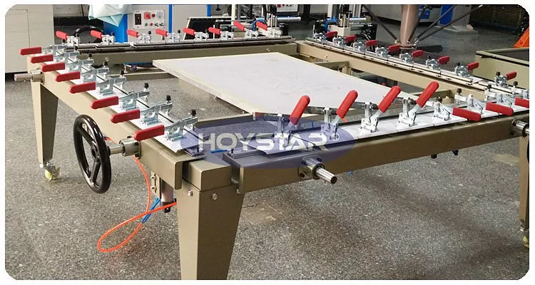 স্ক্রিন কাপড় এবং স্ক্রীন ফ্রেমের আকার অনুযায়ী মেশিন স্ক্রীন স্ট্রেচারের শেলফের আকার সংকোচন বা প্রসারিত করতে পারে। অবস্থান তৈরি করা খুবই সুবিধাজনক।